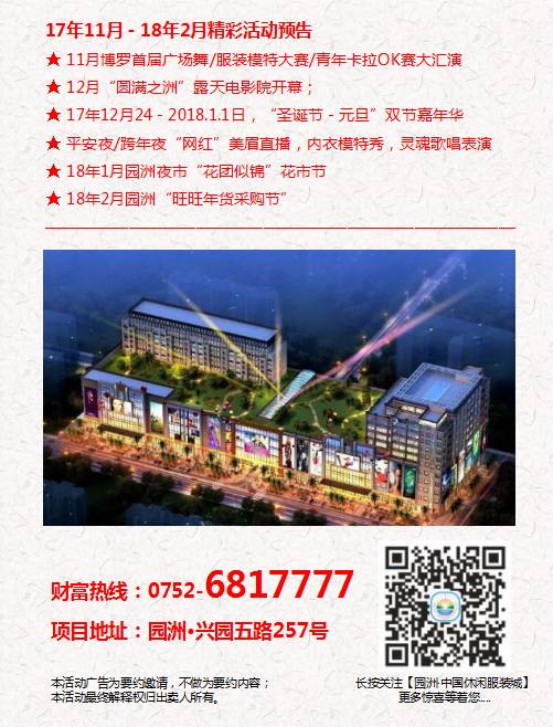 地点:园洲兴业五路257号园洲·中国休闲服装城前广场
