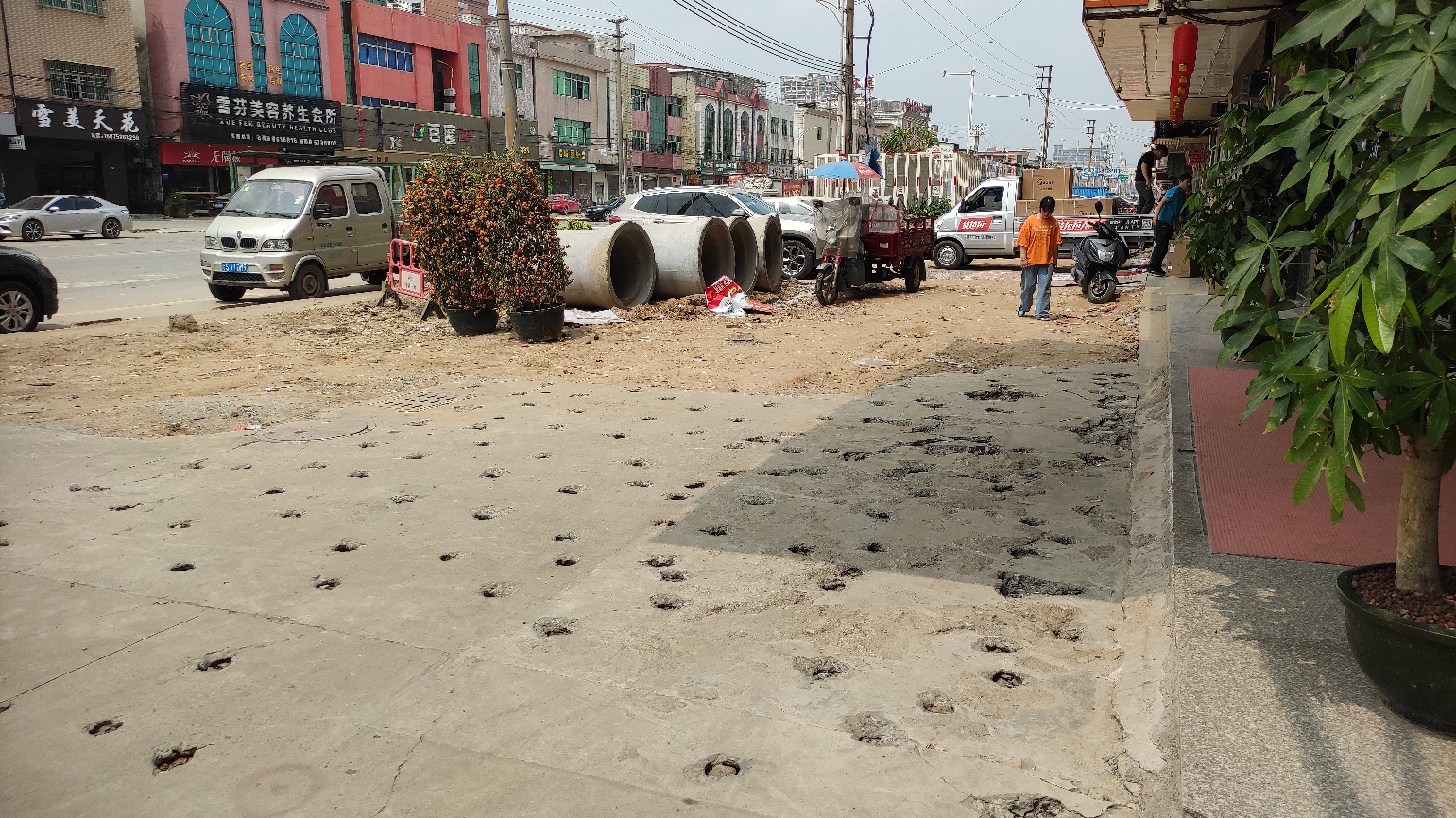 两边的商家也是倒霉透顶了,水泥路面挖开了又不赶快动工