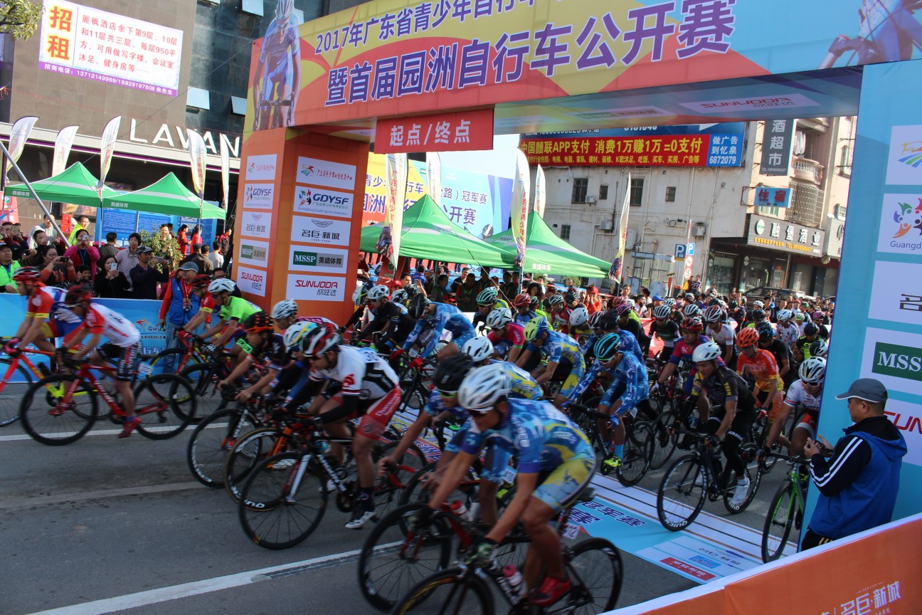 12月3日上午,园洲镇迎来了体育事业发展一大盛会,广东省青少年公路自行车(公路)冠军赛暨首届园洲公路自行车公开赛在上南中心广场正式鸣枪开赛。