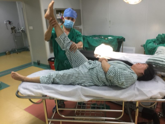 近日(2017年12月17日和12月28日),我院在广州中山医科大学孙逸仙医院脊柱微创中心副主任唐勇教授的大力支持和骨科中心庞健主任的努力下完成了两台高难度的腰椎间盘突出的经皮椎间孔镜手术。两台手术非常成功,两位女士患者术后康复良好,术后即可自行步出手术室。 患者梁女士,47岁,女,陕西籍,入院前7天因搬重物突然自觉右侧腰腿痛剧烈,不能下地直立行走,曾到多家诊所、医院治疗,当天疼痛稍有缓解,第二天疼痛仍然没有解除,疼痛感更加剧烈。于12月6日来到我院骨科中心门诊,经作核磁、CT检查后诊断为腰间盘突出症,是L5/S1间盘突出压迫右侧神经根所致,立即予办理住院。完善各项术前准备后,骨科中心庞健主任在唐勇教授指导下共同完成了局部麻醉下经皮椎间孔镜下髓核摘除手术,历时一小时,术后患者疼痛立即消失,自行走出手术室,术后7天出院回家。 另一位患者黄女士,67岁,园洲人,因腰间盘突出致左小腿前外侧皮肤麻木及左拇趾不能背伸三年,曾到多家医院就诊没有效果,而后来到博罗惠博医院骨科中心门诊就诊,庞健主任经过询问病史,体查及问诊,MR CT检查后,诊断为腰间盘突出症,认为是L4/5间盘突出压迫左侧神经根所致,办理住院手续,完善相关检查后,于2017年12月28日局麻下行经皮椎间孔镜髓核摘除手术,历时一小时。术中把压迫神经的突出物摘除,左拇趾背伸肌力有望在2-3个月逐渐恢复。