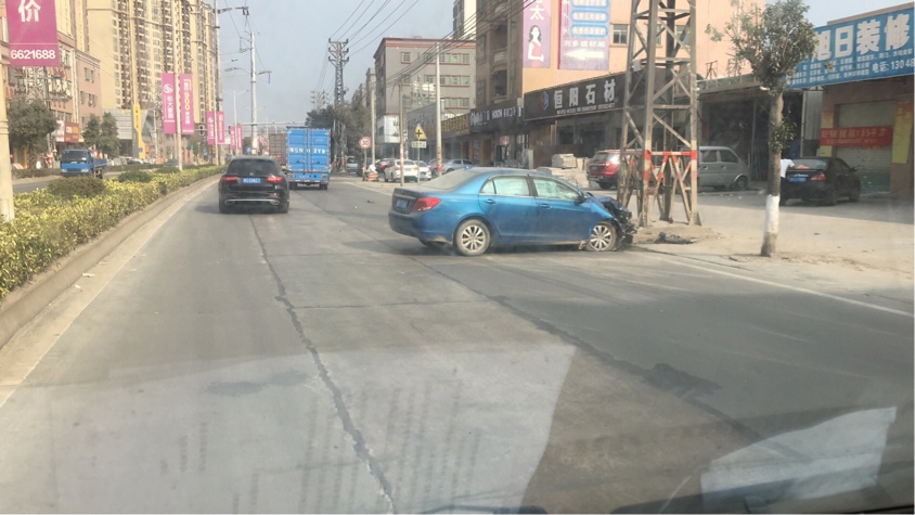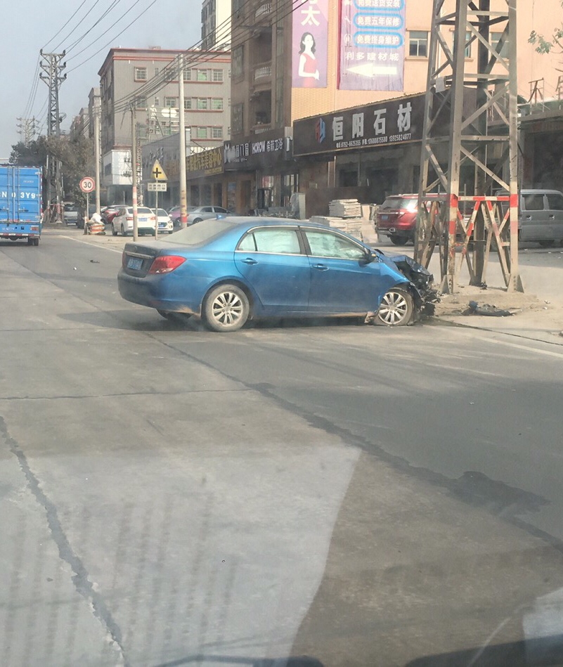 十五时左右,一小车撞向高压线铁塔。