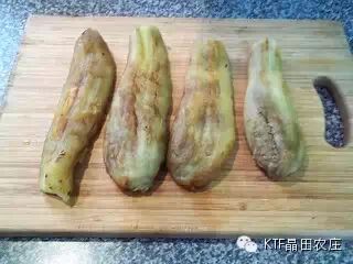 茄子冷却后用刀子刮去皮