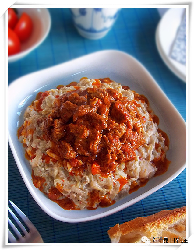 茄汁牛肉伴着烤得香软的茄子吃别提多美味了。这是