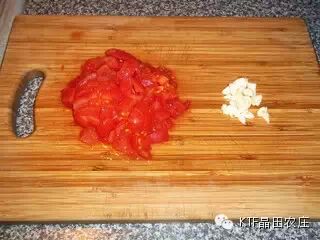 西红柿切丁、2瓣蒜切碎