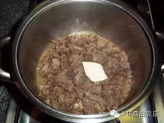 检查肉煮烂后,加入1勺黄油和2瓣大蒜翻炒