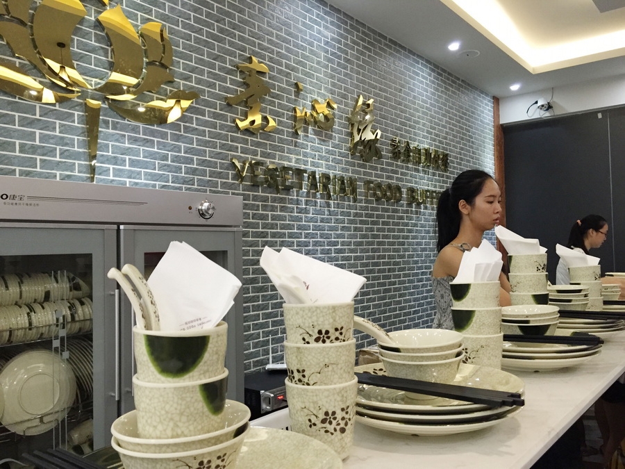 宽敞明亮的素食馆