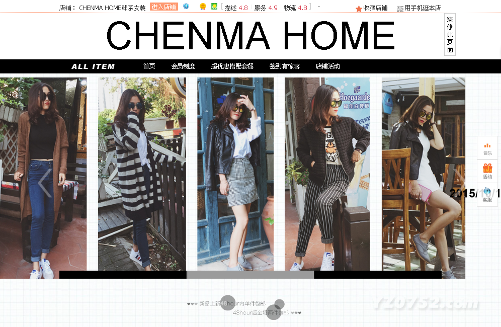 CHENMA HOME女装店成立于2013年,位于园洲镇中大轻纺城创意园C区,专门经营韩系女装,外贸亲子童装,鞋包饰品等服饰配件的网络销售,主要通过时下最热门的淘宝,微博。微信等方式销售。欢迎光临宸妈家,我天天都有新款,周周都有爆款,月月有活动。所有产品都有我们自己的模特穿着拍摄,让您有清晰的参考,放心选购。有任何质量问题无条件退换货,同时长期招聘淘宝代理,支持一件代发,免加盟费,免费使用我们的图片,文字等资料。欢迎对网店感兴趣的小伙伴们加入,我们会不定期的对新人免费培训,推广。分享经验。共同学习共同成长。即便您今后另谋高就,相信我们的经验也会给你留下宝贵的财富,即便您不想卖东西,本店的的服装也绝对物超所值,绝对流行韩范。更推出代理“成长计划”和“优惠细则”,详情关注以下ID咨询!