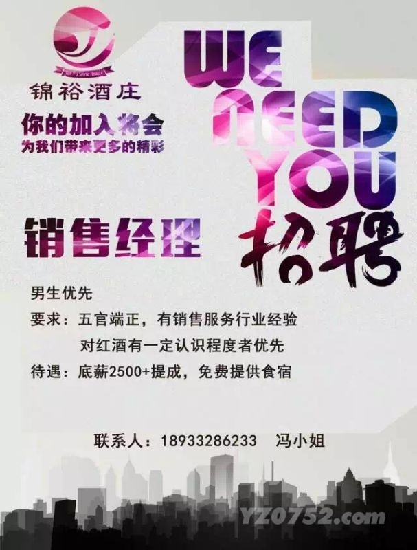 锦裕酒庄诚聘销售经理!