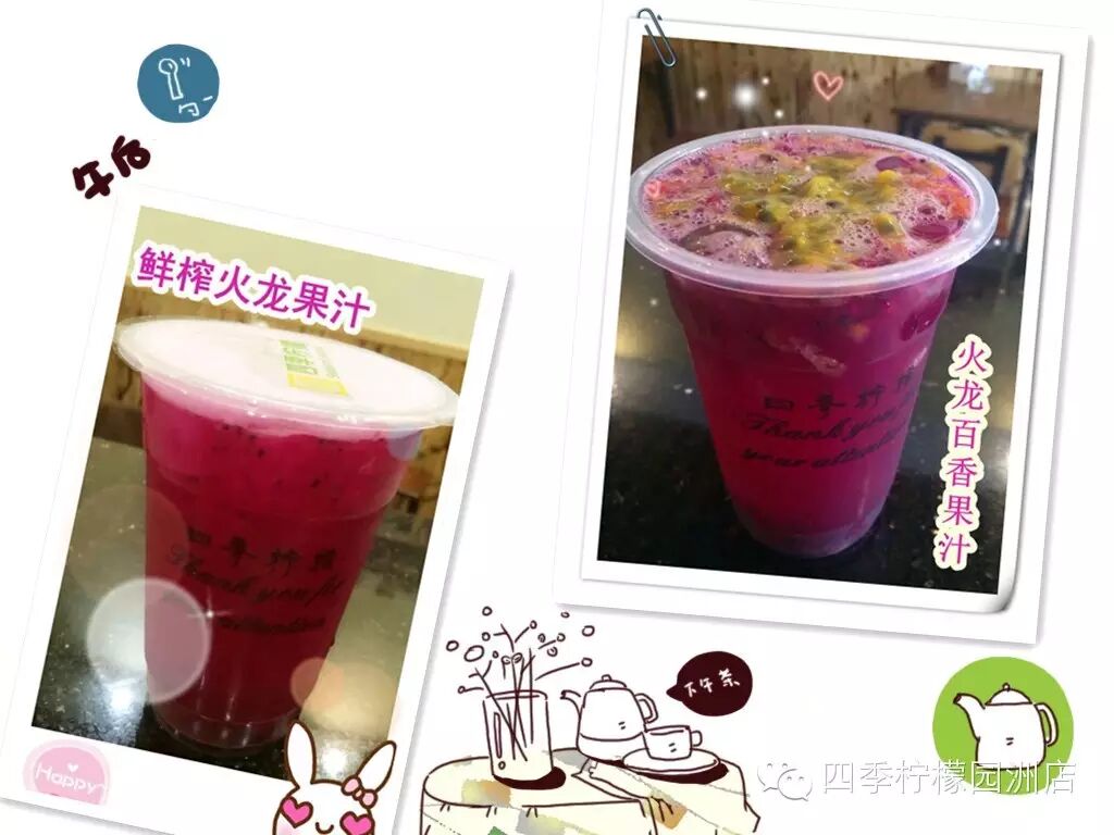 [鲜榨火龙果汁] & 【火龙百香果汁】