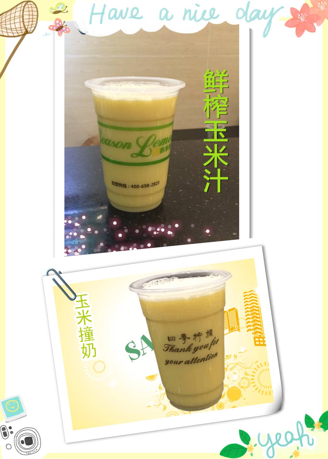 【鲜榨玉米汁】 & 【玉米撞奶】
