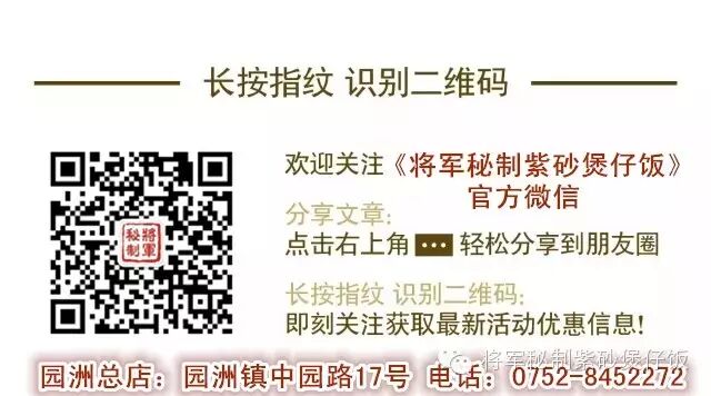 截图发送给“将军秘制紫砂煲仔饭”公众微信号