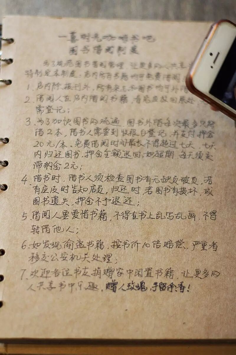 刚来这里的时候小编不知道点餐的顺序,坐下来喊的服务员,原来是要去前台点餐的,因为这样才不会打扰到看书的人,而且就算你不来消费,纯粹看书也是可以的,这家店的初衷就是想提供一个舒适的地方给大家看书,还可以借书噢!小编把借书的需求拍给大家看看
