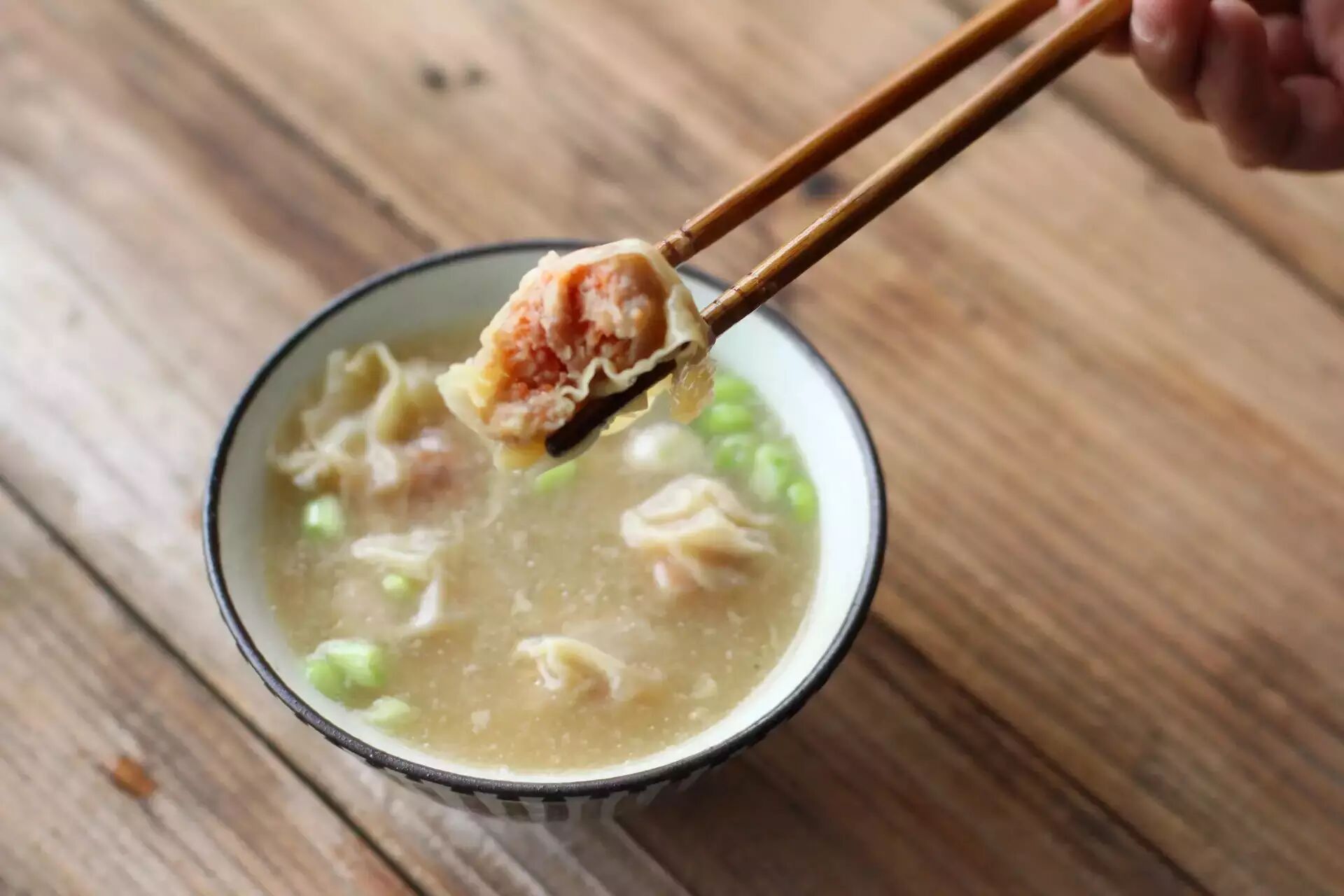打开看里面的云吞粒粒分明,不会粘黏在一起