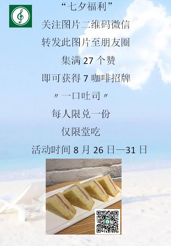 7咖啡免费送招牌一口土司