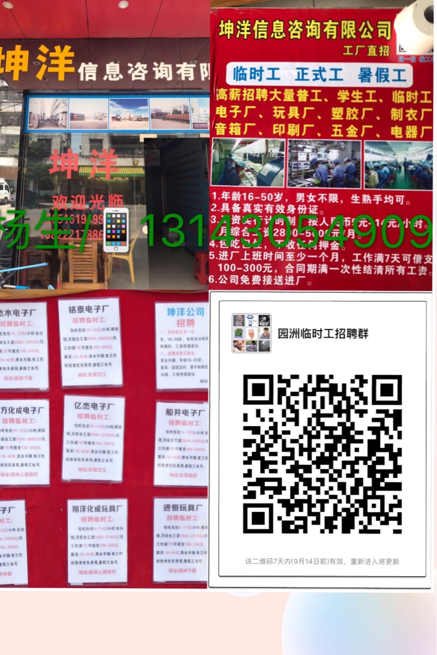 园洲大量招聘临时工12元小时
