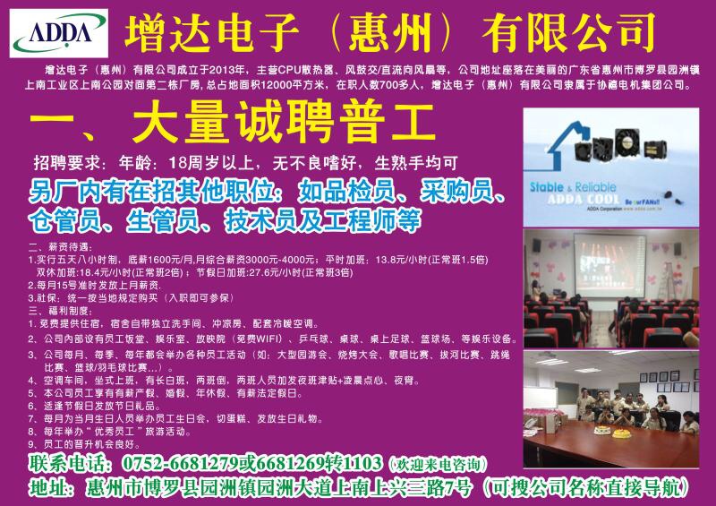 急聘电工,招普工,双休文员,有意可电联。