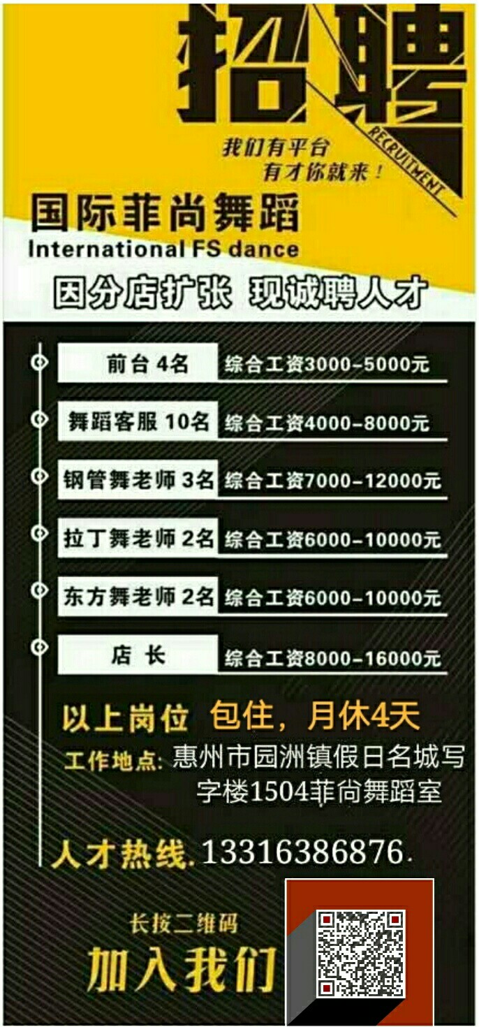 招聘舞蹈销售精英多名,白领工作环境,每天8小时,下午12点开始上班,生熟即可,有专业培训,专业上岗,底薪+高额提成+年终奖+团队奖=月收入1万以上欢迎转发给有需要的朋友们