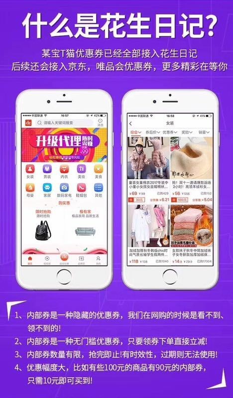 下载花生日记就可以自主搜索优惠券,加入代理便可以分享赚钱。用户粘度高,不需要维护,以后只要是下单了就有佣金。