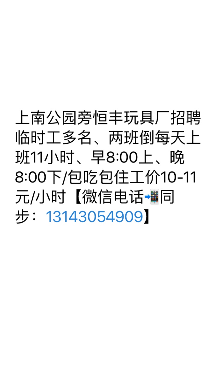 上南恒丰玩具厂招聘临时工多名