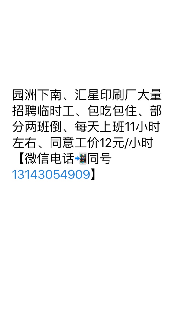 汇星印刷厂招聘临时工多名