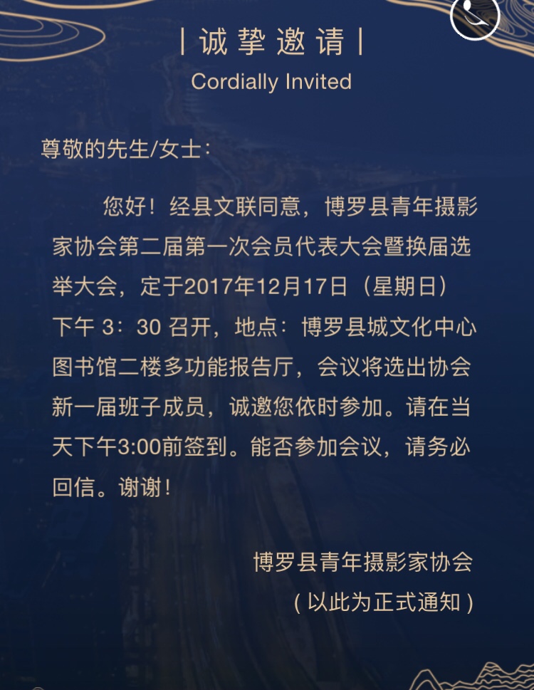 【邀请函】博罗县青年摄影家协会第二届第一次会员代表大会