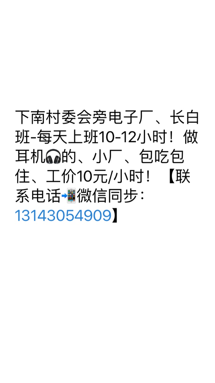 园洲下南电子厂招聘临时工多名!