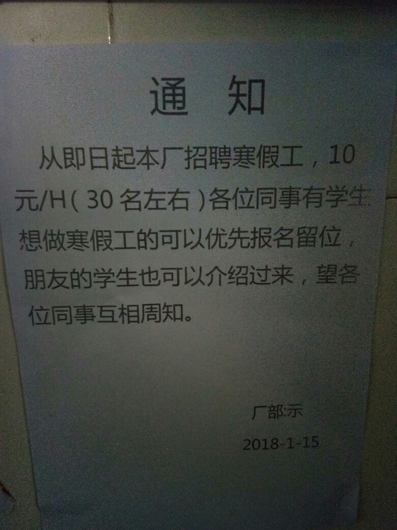 电子厂,长白班,包吃。