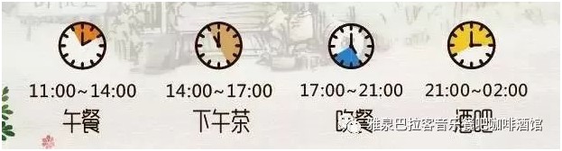 雅泉巴拉客音乐餐吧咖啡酒馆超17小时的营业时间。