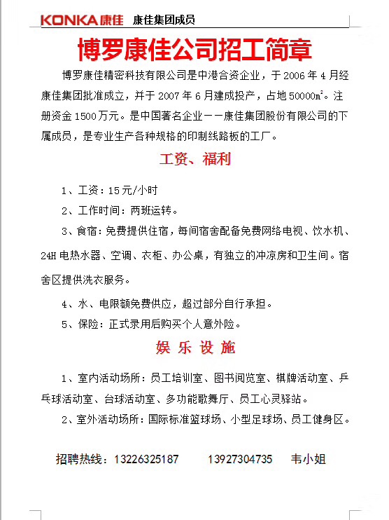 本公司大量招聘普工!待遇好,粮期准!还没有找到工作的请看过来……