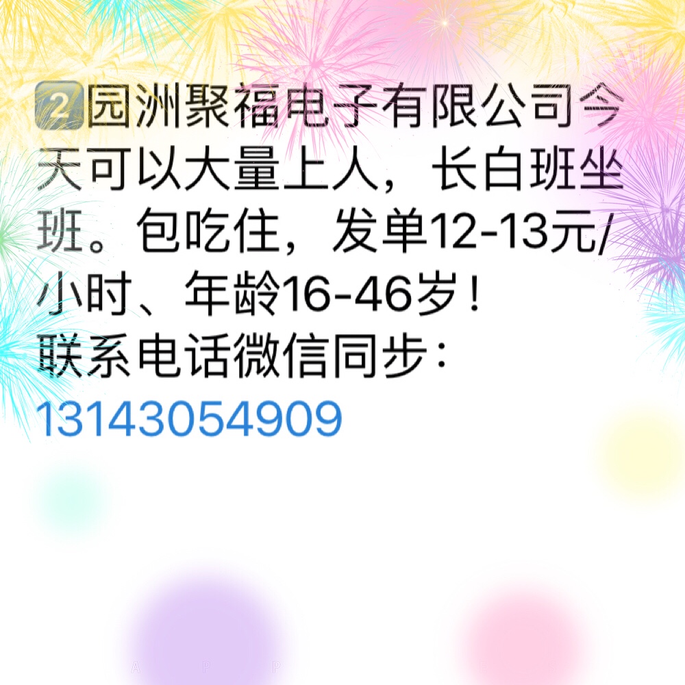 园洲聚福电子厂招聘临时工多名12-13元/小时