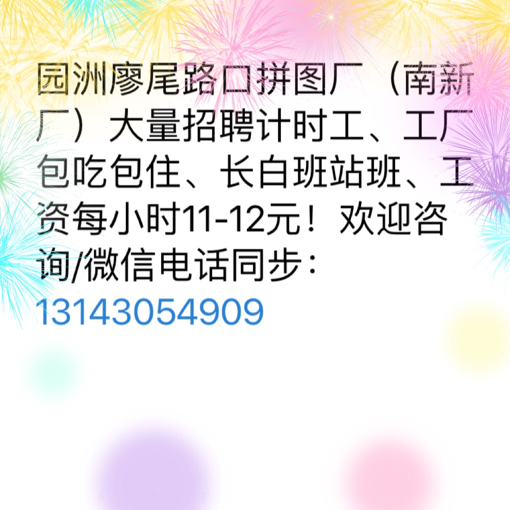 园洲大量招聘长期工临时工,工资高待遇好,包吃住,不压工资!