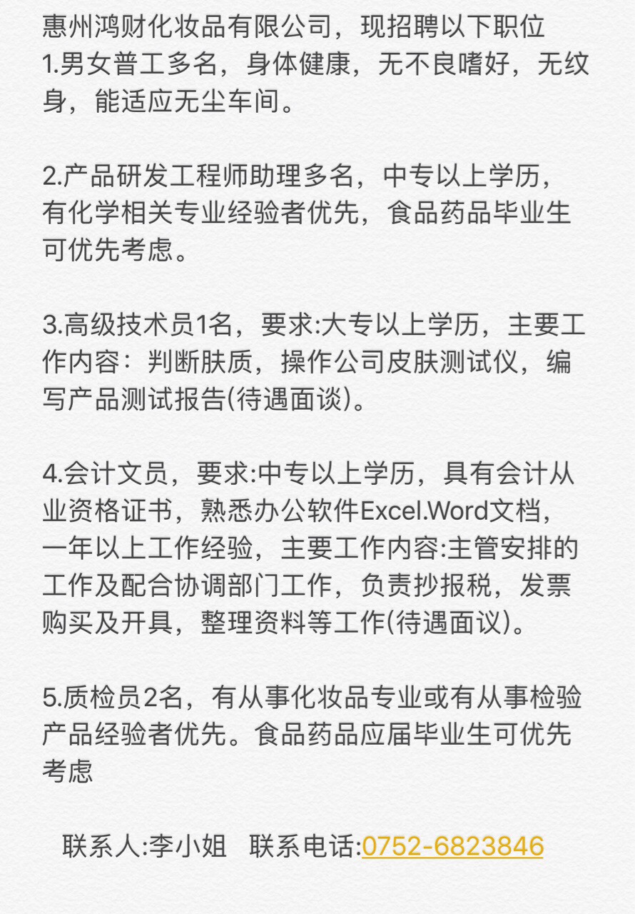 惠州鸿财化妆品有限公司