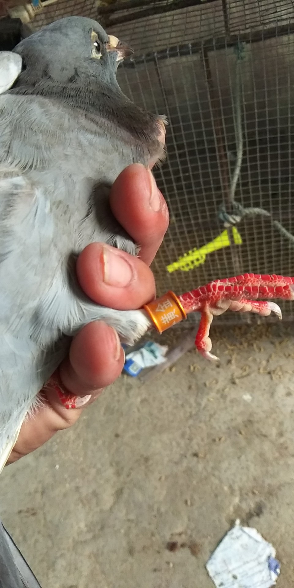 朋友圈有玩鸽子的朋友吗,捡到一个黄金鸽种005号,已经饿了几天了,没力气飞,经过几天的精心照顾,已经开始吃东西,正常了,就是不肯飞走。有需要找回的朋友私聊我一下