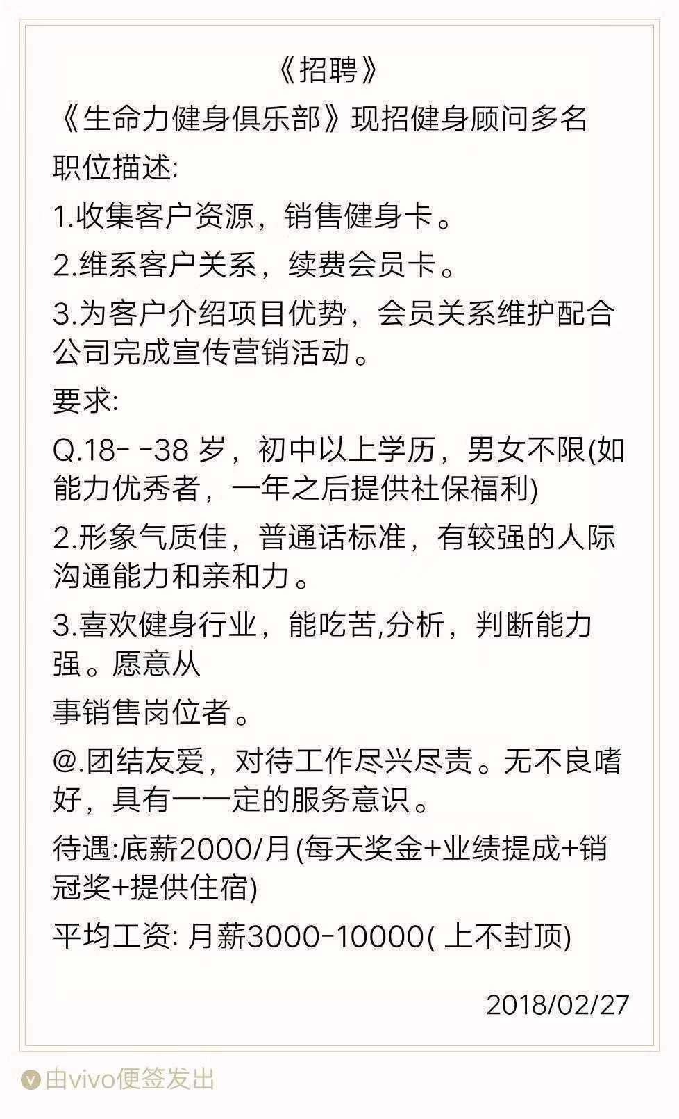 招聘20名健身顾问