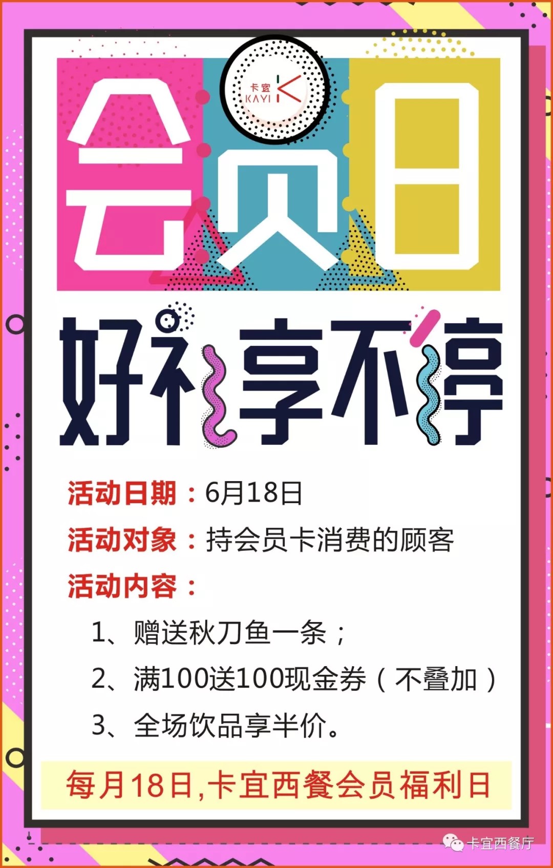 卡宜西餐厅会员日啦