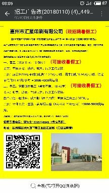 惠州市汇星印刷有限公司直招暑假工