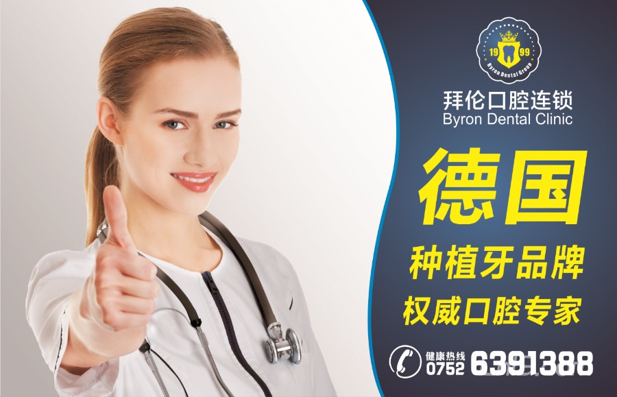 拜伦口腔集团专注口腔医疗服务17年,主要业务办:口腔门诊连锁店、中德ICX种植医师培训教育机构,义齿研发中心等三大板决。其中中德ICX种植医师培训教育机构总部位于广州天河,口腔门诊及义齿研发中心总部位于佛山禅城。为客户提供高品质的口腔医疗服务是公司一贯以来的服务宗旨。拜伦口腔拥有国际先进专业口腔专业CT、水激光仪,引进芬兰WH种牙机,法国卓飞影像诊断系统等一大批先进设备,执行欧美国家口腔诊所消毒标准,中央管控负压吸唾以保证患者看牙绝对安全。让追求口腔健康的你在家门口也可以享受高品质的省城医疗服务。