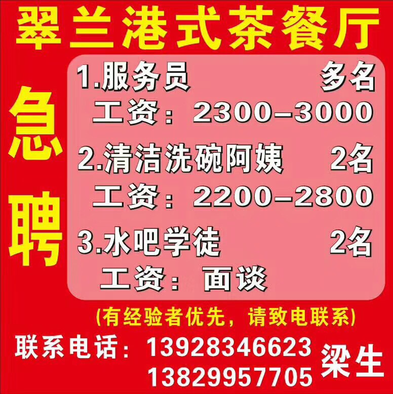 1.服务员多名,工资2300一3000