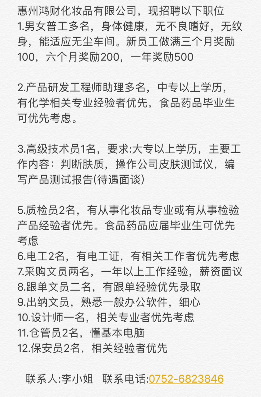 惠州鸿财化妆品有限公司