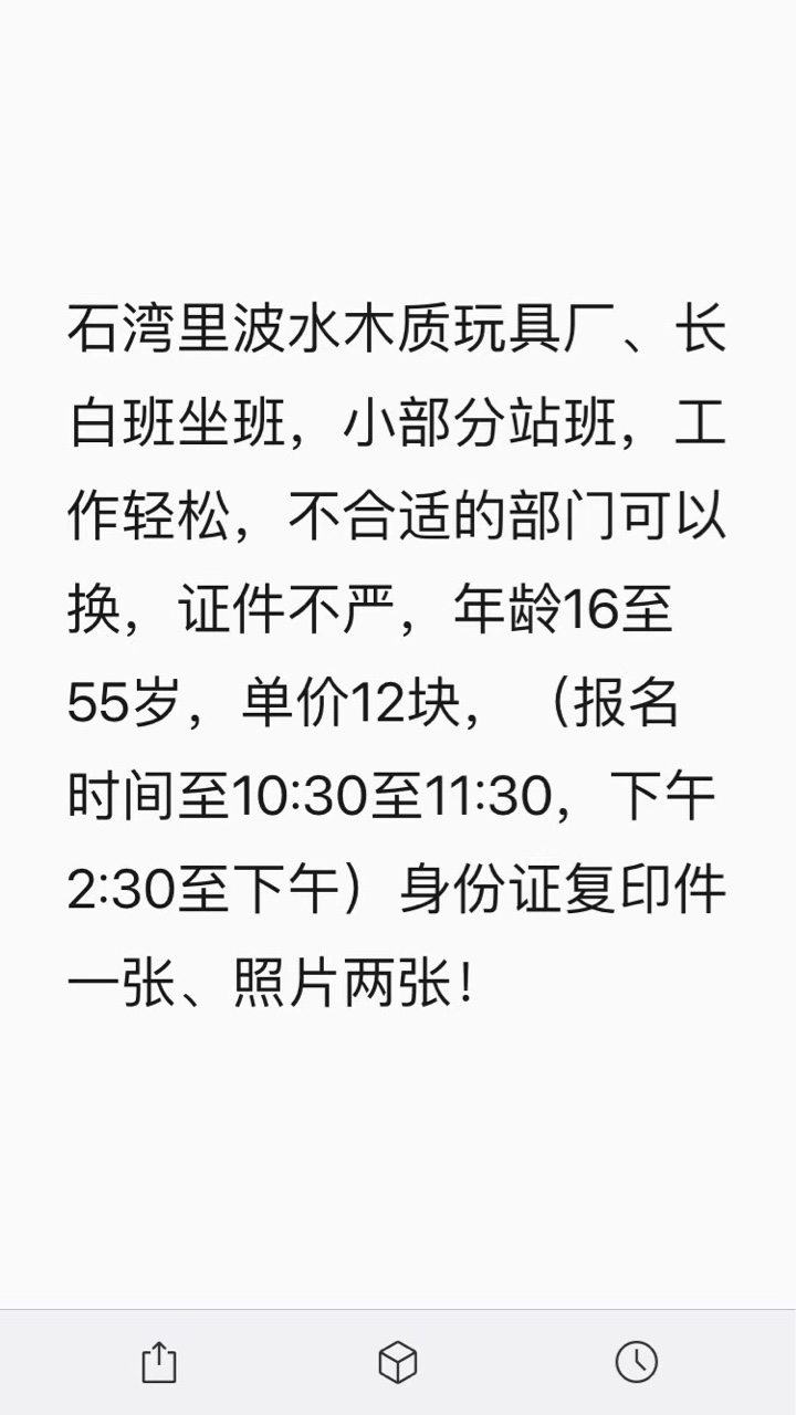 园洲,福田、石湾、石排,龙溪(电子厂、玩具厂、五金厂、)长白班,部分2班倒(坐班)都可以安排。