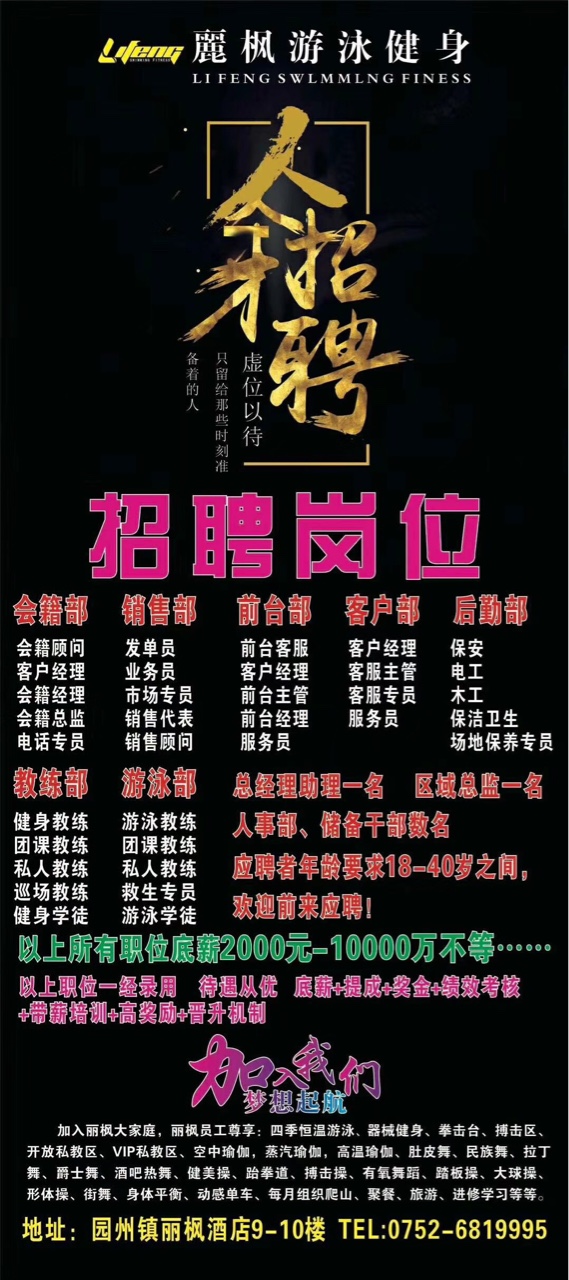 前台顾问5名    底薪提成奖金1-2万[色]以上所有职位:包吃包住空调热水器洗衣机