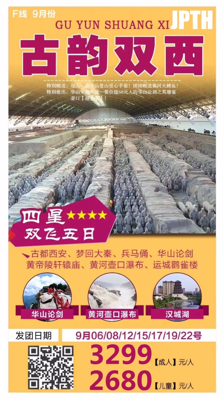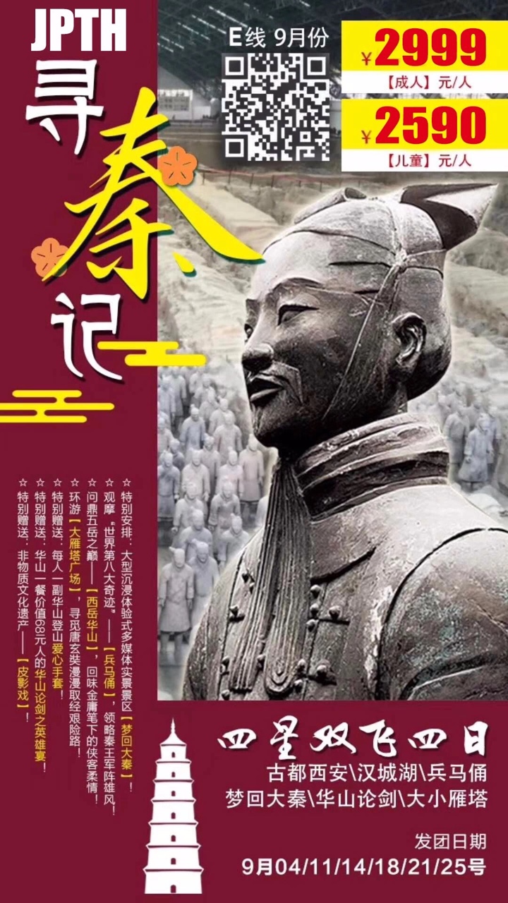 西安中原9月份散客出团计划已出! 秦风唐韵,华夏未央,金秋盛宴报名热线惠州青年国际旅行社园洲门市部0752-6388315/15217849138(微信同步)