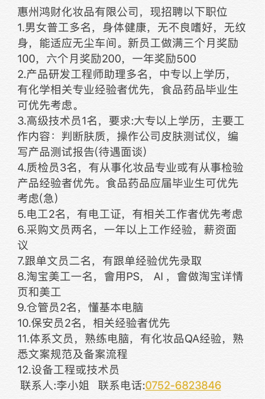 惠州鸿财化妆品有限公司
