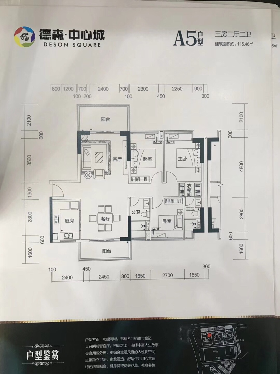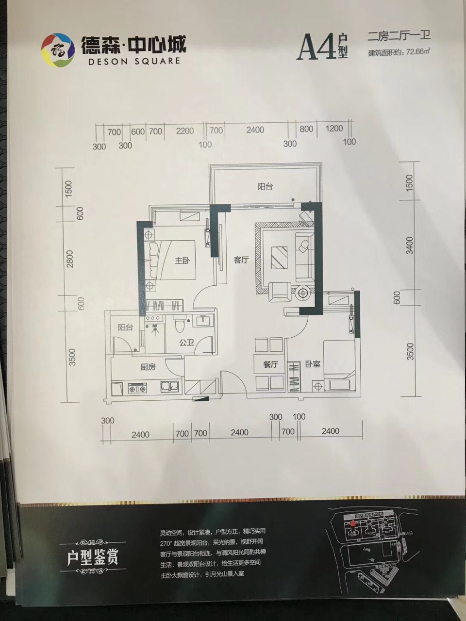 在售户型:72㎡  二房二厅