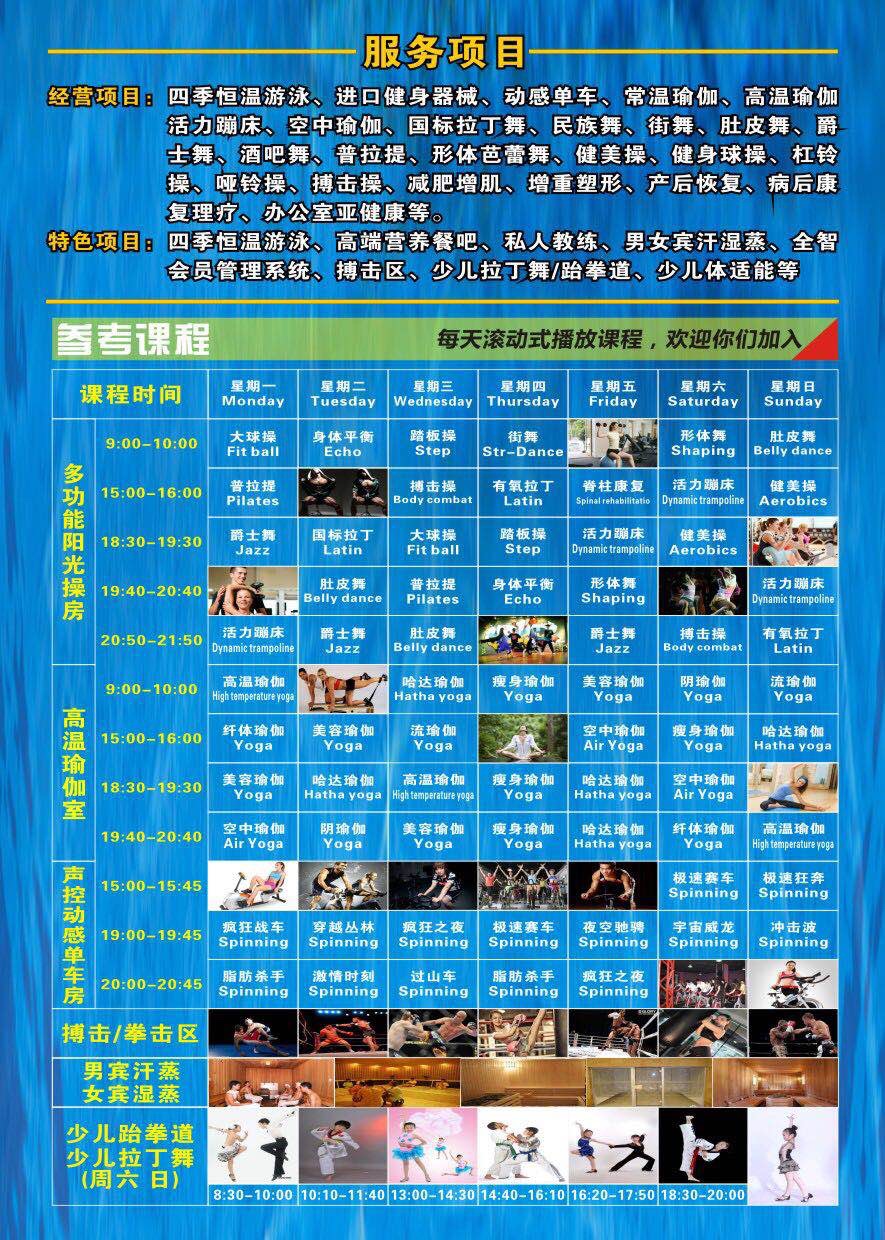 5.所有项目通用【包括,健身,高温瑜伽,舞蹈,游泳,进口有氧训练设备。