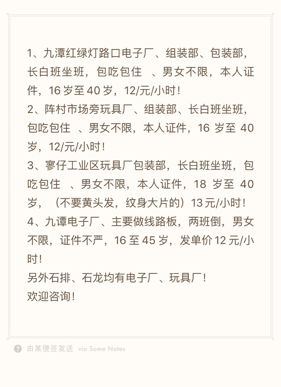 园洲工厂临时工最新招聘信息![微笑][微笑][微笑]