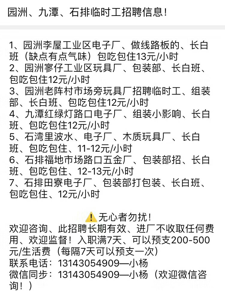 园洲,及周边各工厂招聘临时工,地方,工作性质,岗位可多方面选择