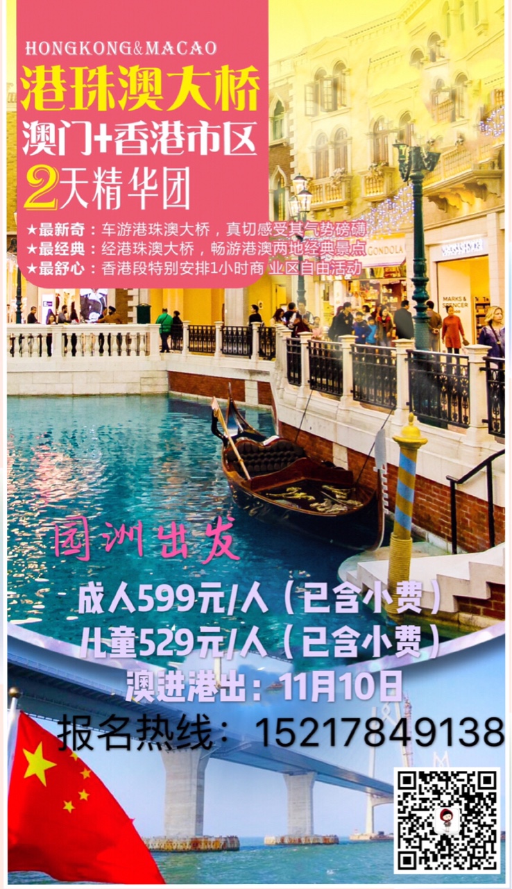 港珠澳大桥开通现推出车游港珠澳大桥+澳门+香港观光两天游只需599元[發]园洲出发园洲上车11月10日出发[勾引]