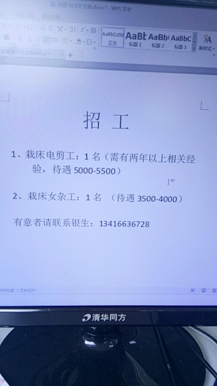 招工:电剪工、女杂工