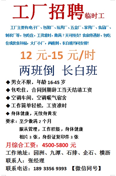 14.5招聘临时工,限一女